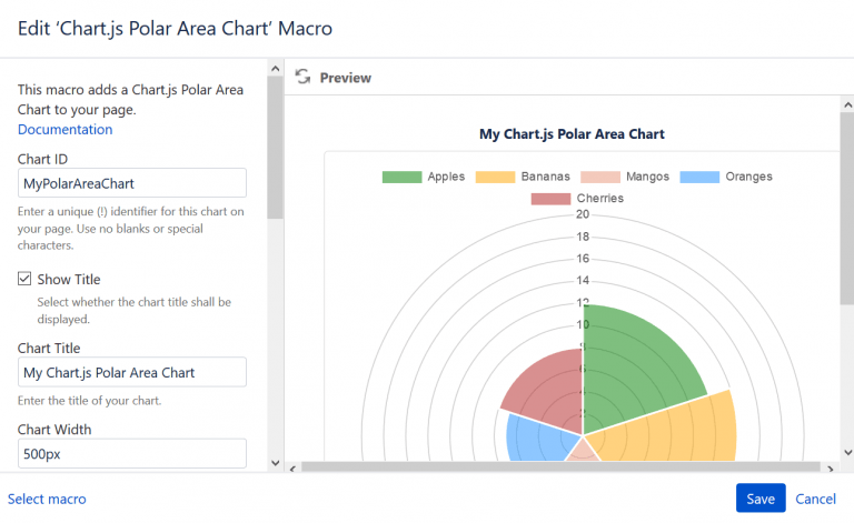4. Select the “Chart.js Polar Area Chart” macro